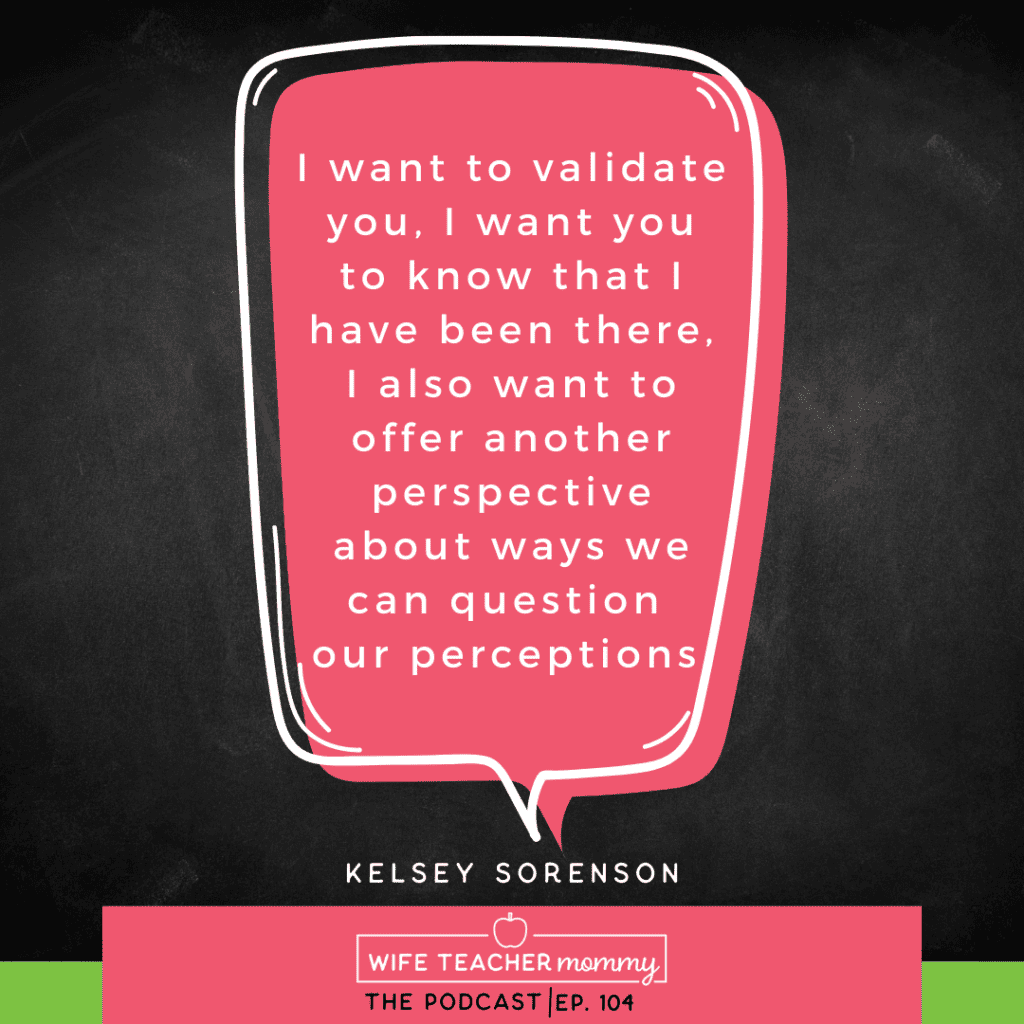 Welcome to the podcast today, my friend, I’m so excited to be here, as always, and today’s actually been a batch recording day and recording a lot of episodes for you today because I am writing a book if you haven’t heard. And the one thing that I want to mention, in case you missed it on other episodes, because I’m also focusing on my book, you might notice that for a while, approximately every other week, we’re going to do an awesome replay of an episode from the archives. And then we’re going to have new content like this episode as well. So I’m not going anywhere, we’re still going to have a new episode for you each week. And I might even get creative with doing some like episode swaps with other people. I want to make sure that the content that you get from this podcast each week is high quality, while also continuing to offer high quality weekly coaching to wife, teacher mommy club members, I need to make sure that stays top notch they are paying me for this. So we’re keeping the coaching going and writing my book and the podcasts, I just want to make sure everything stays top notch. So we are still showing up in your podcast feed each week. But the weekly episodes will be some will be replaced. Some will be new content. And then we might even have some other really fun stuff in here too, as well. So stay tuned, this podcast is still coming to you each week. It’s still amazing. And the episodes from the archives are handpicked ones that I really believe that if you missed it, you’re going to want to listen to it. Honestly, if you’ve listened to all 104 episodes up until this point, and you listen to every single one like good for you. But I honestly bet that most of you if not all of you have not because that is a huge commitment. So don’t write those episodes off. Okay, so today in this brand new episode of brand new content, we are focusing on the experience of those of you who are moms but before we begin to talk about all of this I want to share a an amazing, free opportunity for you that many have already participated in. But most of you probably haven’t. So far I’ve taught a few of these incredible mindset master classes where I’m sharing how I transformed my teacher overwhelmed into balance. It’s kind of like really synthesizing and lots of new information that I share here on the podcast all in one live masterclass, you’ll be able to ask me questions, it’s going to be a really great time and intimate workshop. And I’m teaching it several more times as well. Actually, I’m hoping to be able to start teaching this class weekly, but you do need to attend it live. And there are goodies when you join me live like free resources. When we do it live, there are giveaways. Like it’s just a really, really great time. And I’ll be sharing how you can unlock the secret to finding balance to getting your mindset in tip top shape, and sharing stories about how it has helped other teachers and homeschool parents, just like you. And you will learn so much in this class. Even if you walk away with nothing else. I would love for you to take this chance to attend and join in with me if you love this podcast, you’re going to love this masterclass. And when you join you get two free weeks of social emotional learning for pre K through sixth grade just for signing up for the workshop and joining us so I would really recommend that you join go to wife teacher mommy.com/masterclass and that will take you to where you need to go to sign up for those who find themselves feeling exhausted. You know, you’re just around kids all the time you teach at school all day, come home to your own kids or your homeschool mom, and you’re with your kids all day. Either way you are around children a lot So I want to validate you, I want you to know that I have been there, I felt the same way. I’ve said the same thing to myself. I also want to offer another perspective about ways we can question our perceptions, what are the circumstances of our life situation with our children, and what are our thoughts and where we can really take our power and ownership back in our lives and not be stuck in that, you know, victim mentality of I’m just with kids all the time, my life is so hard, because you know, there’s nothing that benefits us from that, right. So I’m just here to kind of give you a gentle nudge, to appreciate that part of your life more and maybe set some more boundaries, maybe just reframe your mind, it depends on what is going on for you processing those emotions, all those things, I’m going to share different things that we could do around this situation, the circumstance of both teaching children and having children, whatever that looks like for you. Like I said, that is the circumstance part, you do have those things like you do teach children, whether you’re your own or in a classroom, and then you are a parent to children. So they’re things you want to do to take care of them or whatever, and you have both of those things on your list. Now you might also feel like I am with children all the time, I never get a break this never, this is just so much for me. All of that is the story that you’re putting behind it. That’s the perception is that you’re making this mean that you’re making teaching children and having children have. And those are optional thoughts that are making us feel overwhelmed or stressed or feeling like we never get time for ourselves, or whatever. So some common thoughts that might contribute to this is like I’m always around kids, I have no personal time, homeschool moms might even think I can’t escape being away from my kids. If you’re with the same kids all the time, teachers might think that I’m with other people’s kids all day, and I come home to my children too exhausted for my own children. Like Believe me, I’ve heard all of these, I felt all of these, I felt like the feelings that come with all o