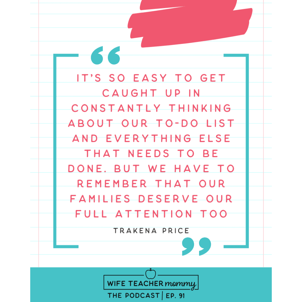 Read the transcript for episode 91, Being Physically & Mentally Present at Home as a Teacher Mom with Trakena Price: