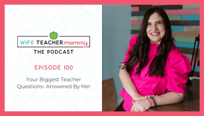 You are listening to episode number 100 of wife teacher mommy, the podcast your biggest teacher questions answered by me from balancing home and life to toxic family members and decluttering to wanting to fit reading with your kids into your day. We are talking so many teacher questions that have been asked to me that I think will be relevant to all of you who listened to the podcast, so I can’t wait to share all of these with you let’s go.