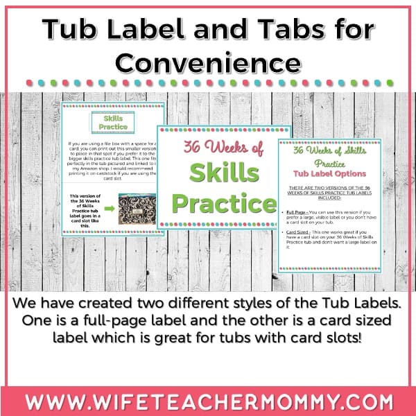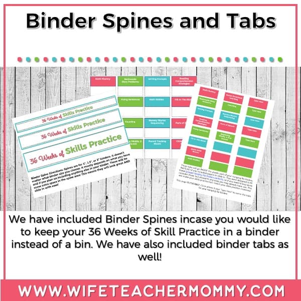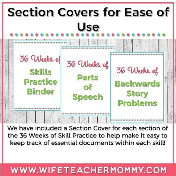 Ready to get your 36 Weeks of Skills Parent Resources organized? Look no further! This pairs with all of the 36 Weeks of Skill Practice Resources. Never again will you have to spend hours sorting and organizing your resources so that they are functional.