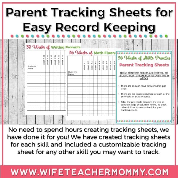 - Parent Tracking Sheets to help you effortlessly track your child’s progress
