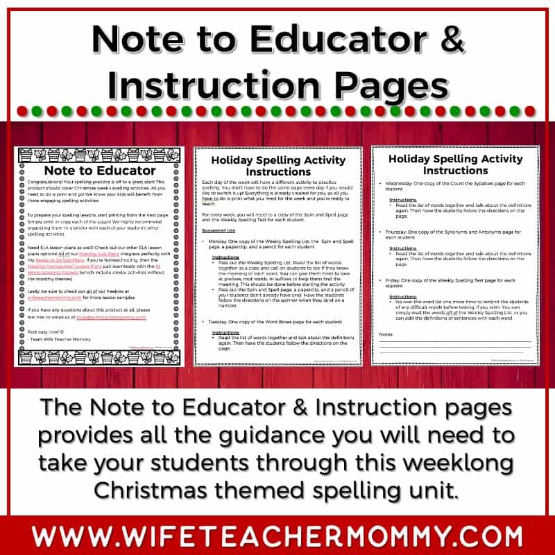 These spelling activities have everything you need for 3rd-6th Grade Christmas spelling instruction! They are quick and engaging and already have the weekly spelling unit ready to go. All you have to do is print & teach! This is also a great purchase for parents and homeschoolers who want structured festive spelling instruction at home.