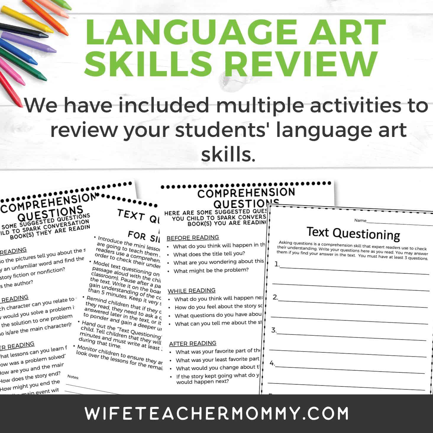 - Our language arts worksheets are designed to reinforce key language arts concepts such as questioning, making connections, visualizing, and sentence corrections.