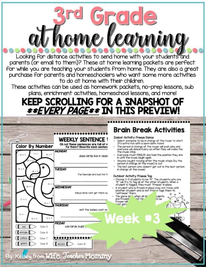 ➡️CLICK HERE FOR THE 3RD GRADE AT HOME LEARNING PACKETS BUNDLE! ⬅️