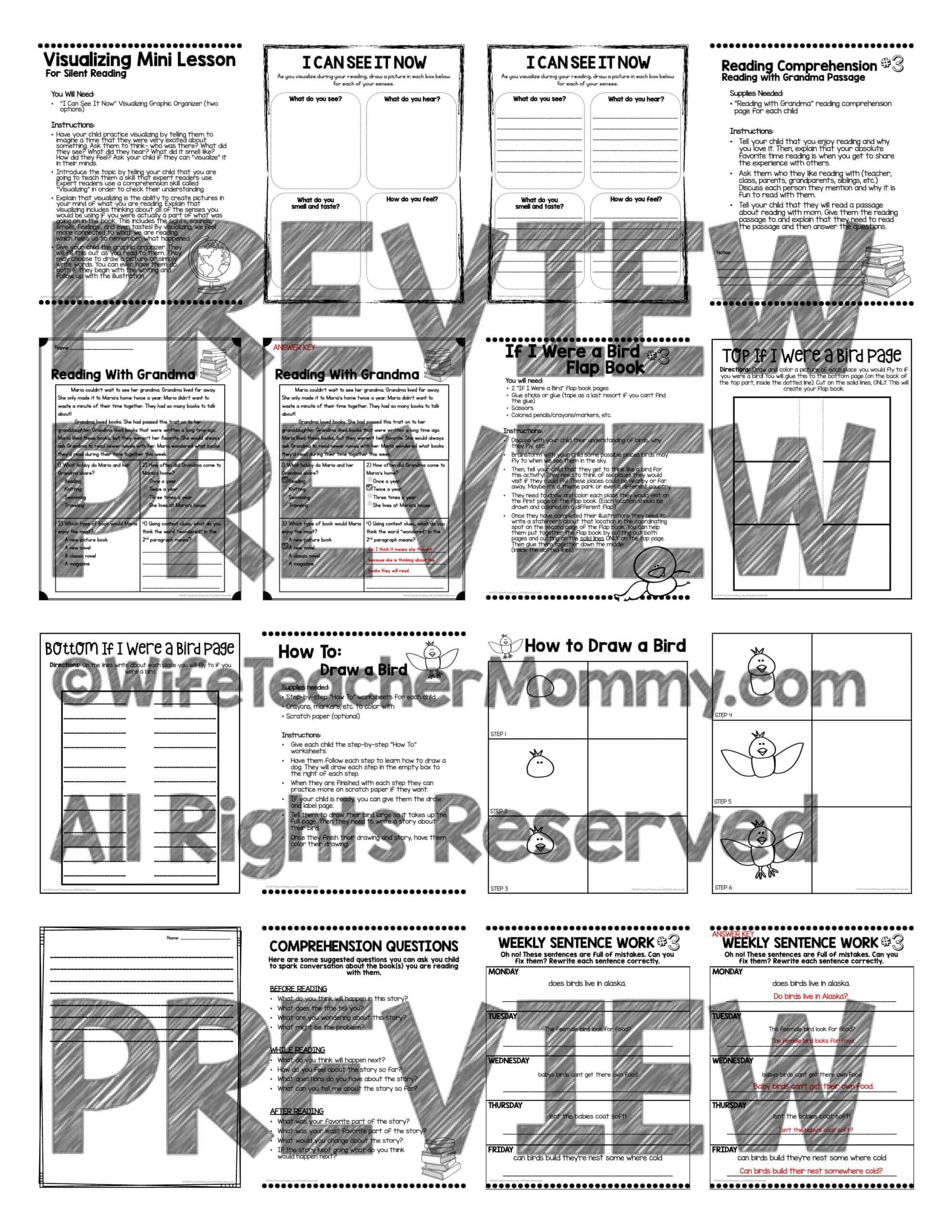 - Reading Prompts & Lesson: A lesson plan is included to introduce the topic (Reading with Grandma) for the reading prompt. Includes a comprehension passage and four comprehension questions.