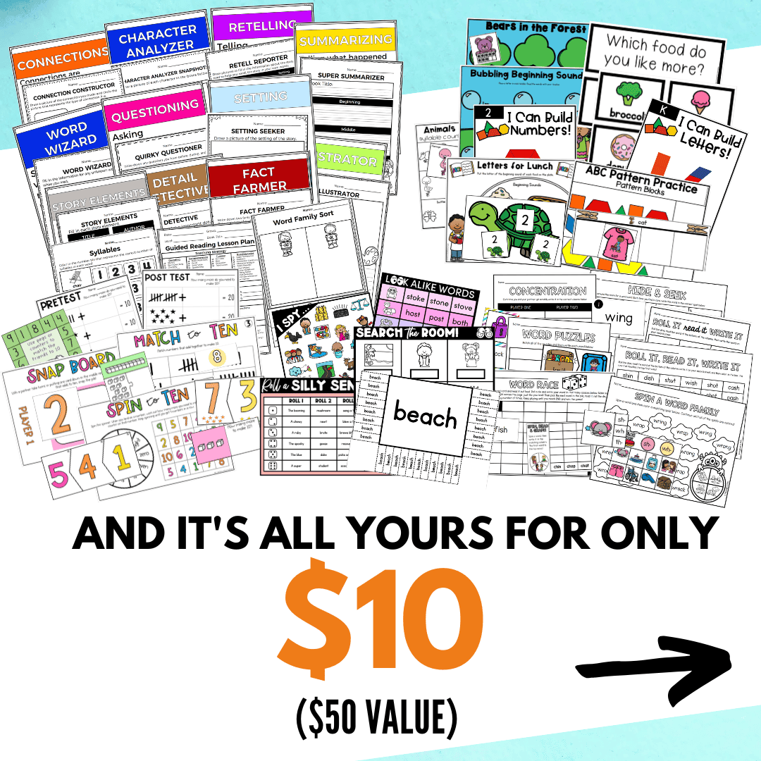 This is a GIANT limited-time bundle of math and literacy resources that you can’t find anywhere else: