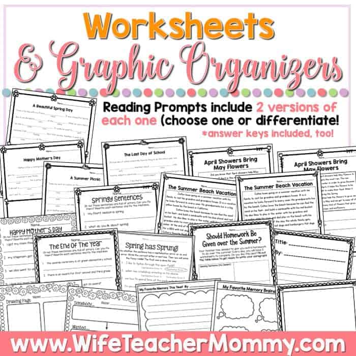- 2 reading prompts are included at 2 different levels. Choose one to use or use both and differentiate! One of the prompts is Spring themed and another is looking forward to Summer.