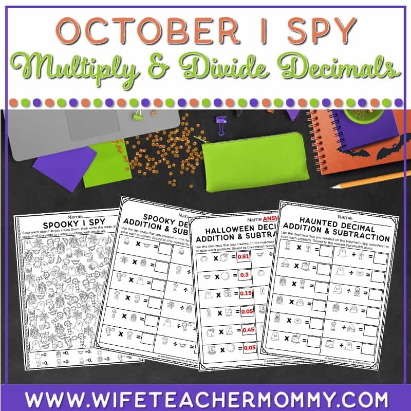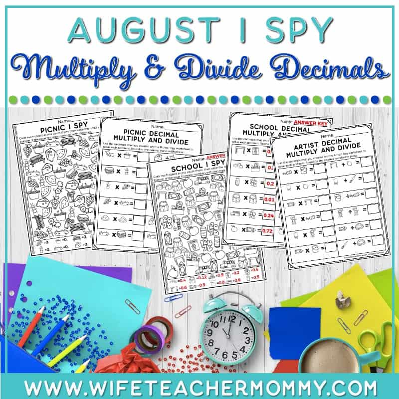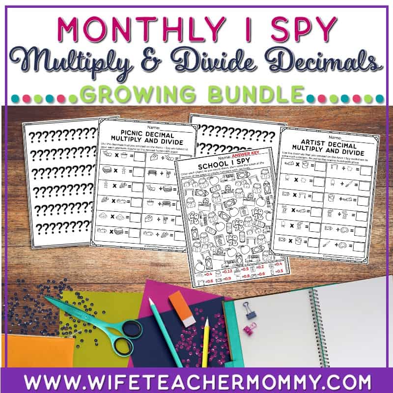 Included with the monthly, I Spy: Multiplying and Dividing Decimals Worksheets, you will get the following: