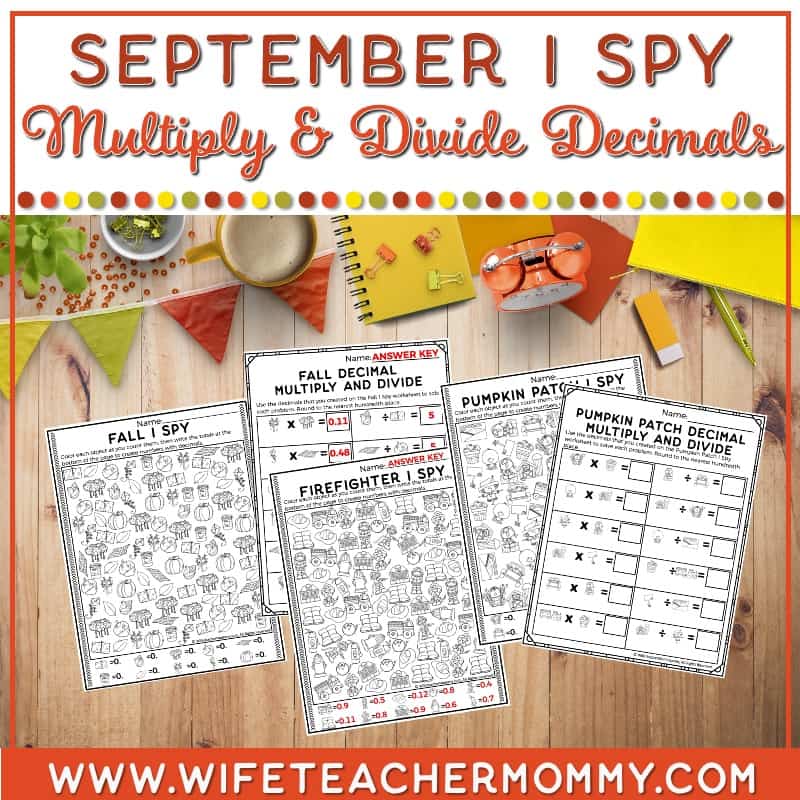- Four Decimal Multiplication and Division Worksheets using the totals from the I Spy Worksheets