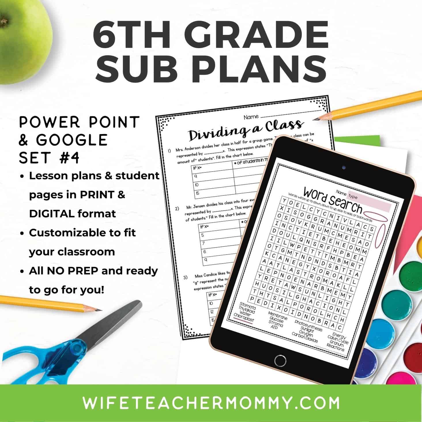FOR THE BEST DEAL AND TO BE COVERED FOR AT LEAST A WEEK, GRAB THIS RESOURCE AS PART OF THE NO PREP 6TH GRADE SUB PLANS PRINT + DIGITAL BUNDLE! Â