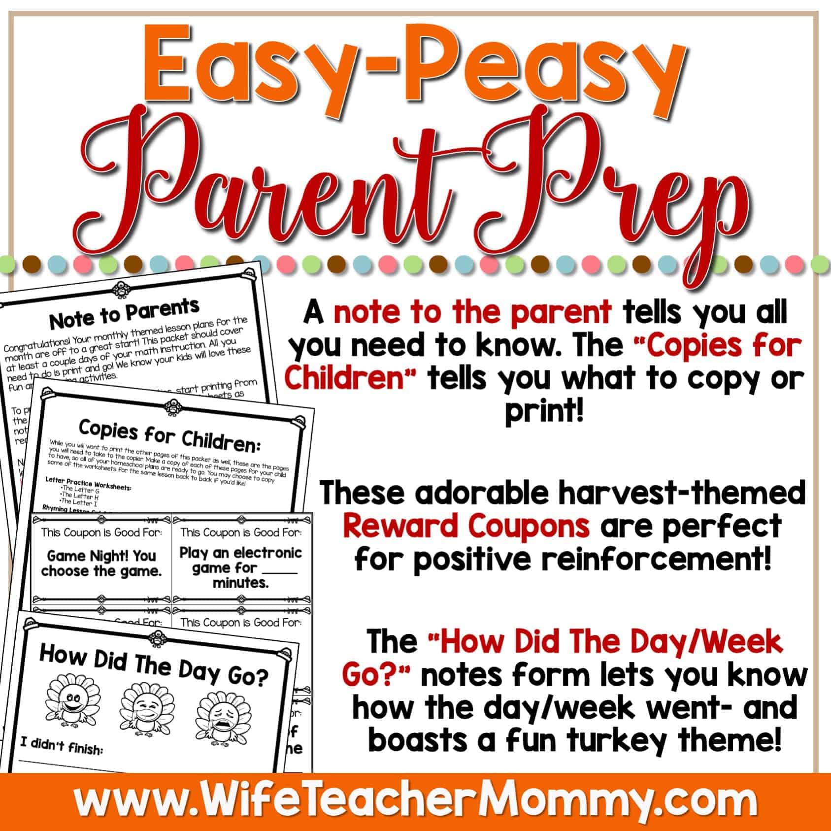 Themes in the activities and lessons include: Thanksgiving, turkeys, Black Friday, Dia de los Muertos, Veterans Day, corn on the cob, and more! The monthly themes are so engaging and fun for kids.