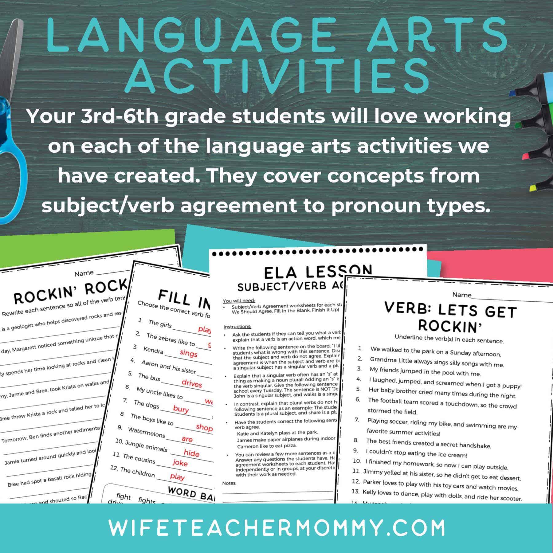 Language Arts Activities to reach all learners from 3rd-6th grades including subject/verb agreement, fixing sentences, verb tense, and pronoun types