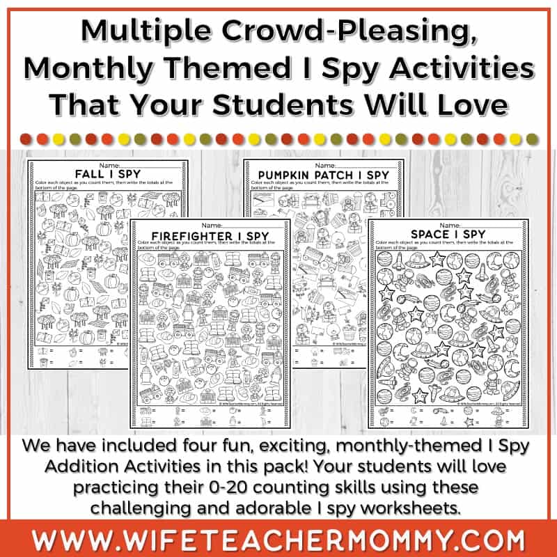 Looking for fun ways to get your students counting and working on their addition skills? What better way than an engaging I Spy activity? We have put together fun, September-themed I Spy worksheets to get your students counting!