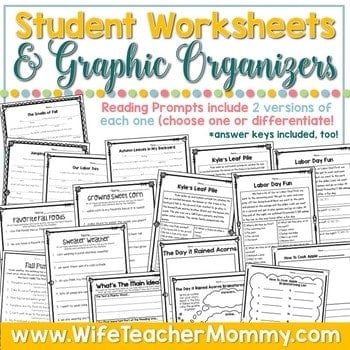 2 reading prompts are included at 2 different levels. Choose one to use or use both and differentiate! One of the prompts is Labor Day themed and another is about raking leaves!