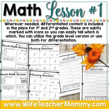 Quick Math Review: These quick reviews will go over grade-appropriate math content. 2 versions are included, one for each grade level, per lesson. A total of 6 quick math reviews are included.