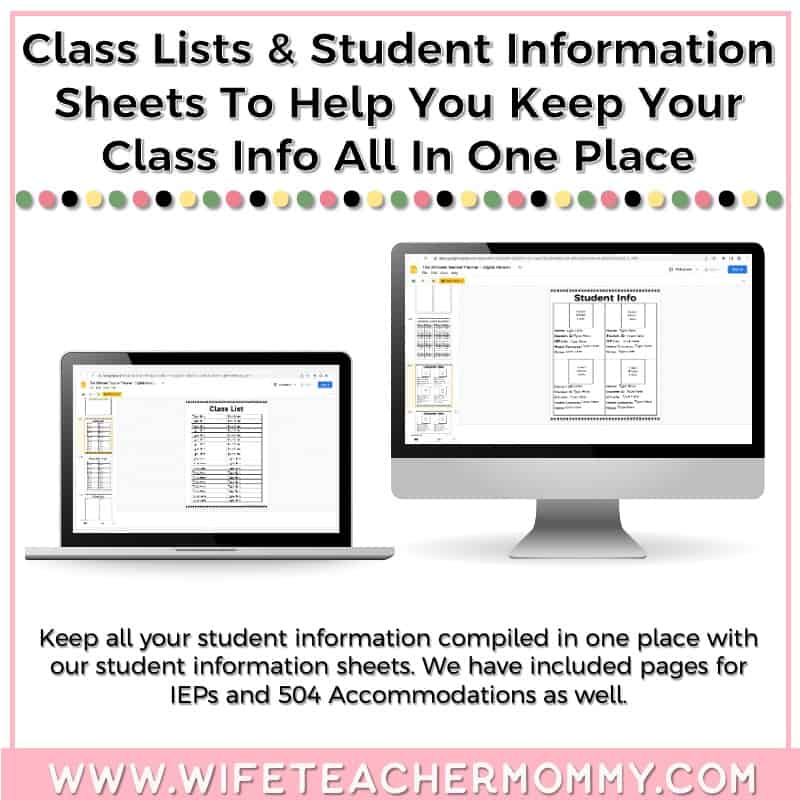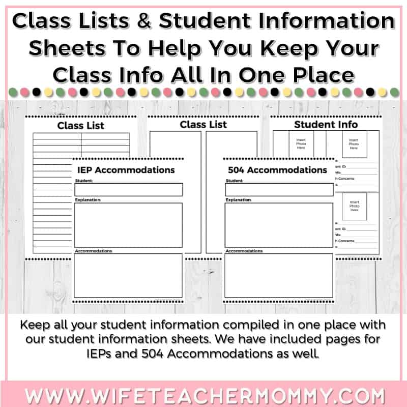 • Class List Sheets and Student Information Pages to help you keep track of each student’s individual needs