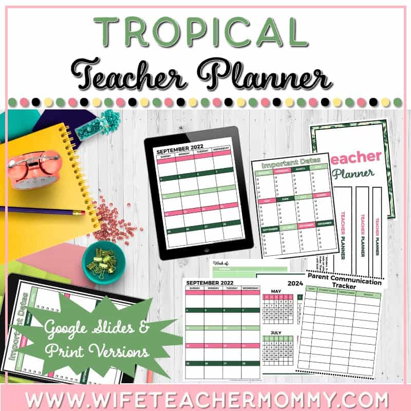 Looking for your next teacher planner? The Tropical Teacher Planner includes everything you will need to have the best, most organized school year ever! We have thought of everything and made sure you will have all the pages you will need when planning this school year! The tropical theme is sure to get your students excited about the year and ready to hit the books!