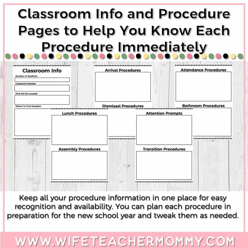 • Classroom Procedure Pages to help you plan out your procedures before school even starts