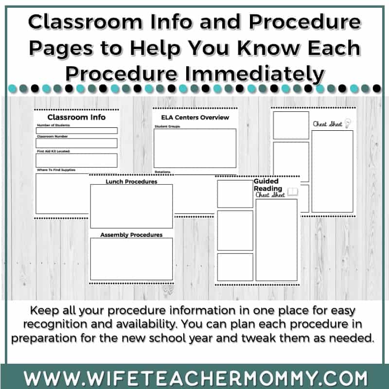 - Classroom Procedure Pages to help you plan out your procedures before school even starts