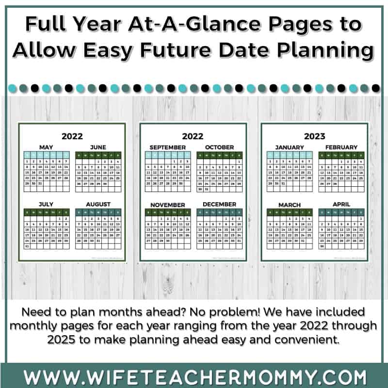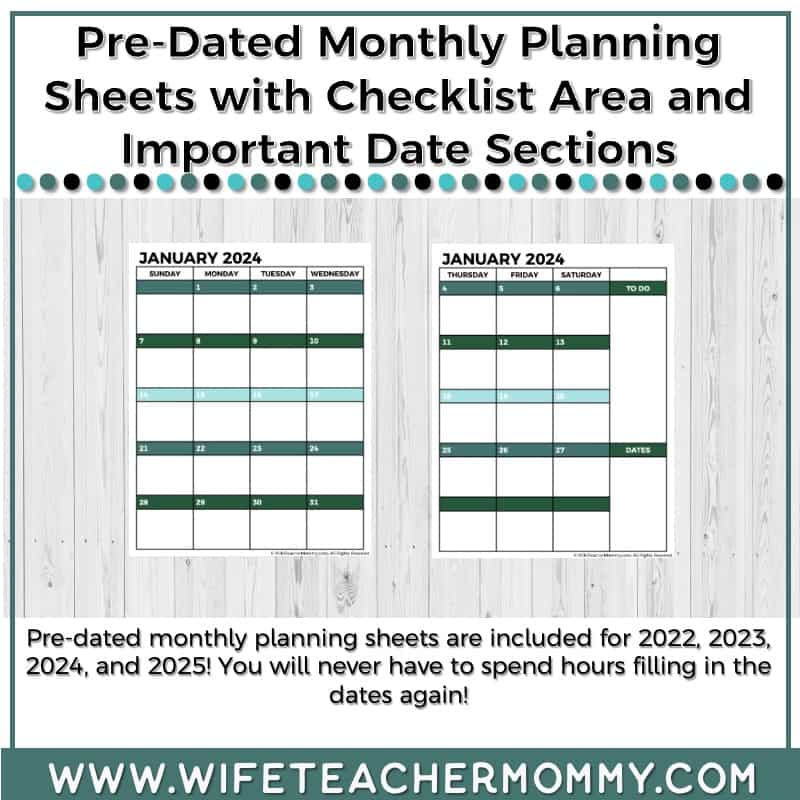 - Pre-dated Planning Sheets so you will never have to spend hours writing the dates again