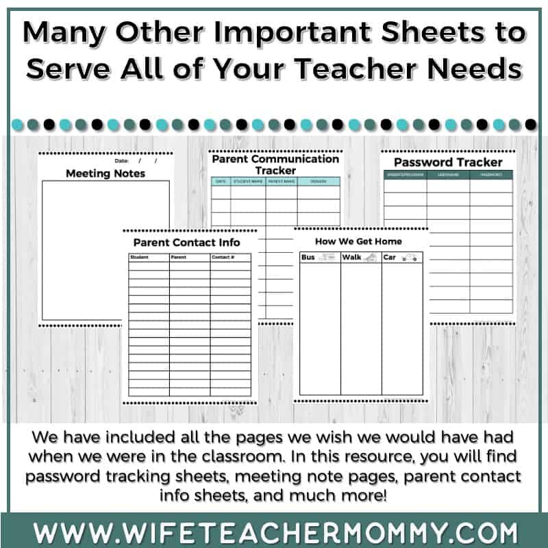 - Parent Contact & Communication Logs to track each time you communicate with parents to help ensure that you are communicating positive information as well as necessary information