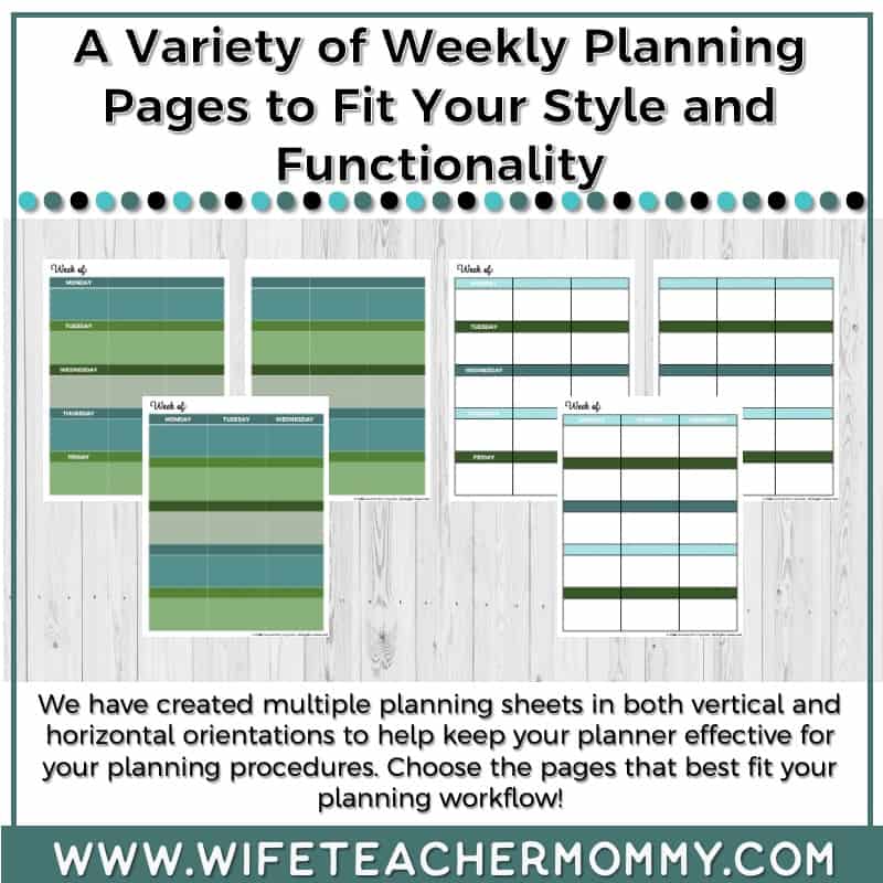 - A variety of weekly planning sheets to allow you to choose the pages that best fit your needs