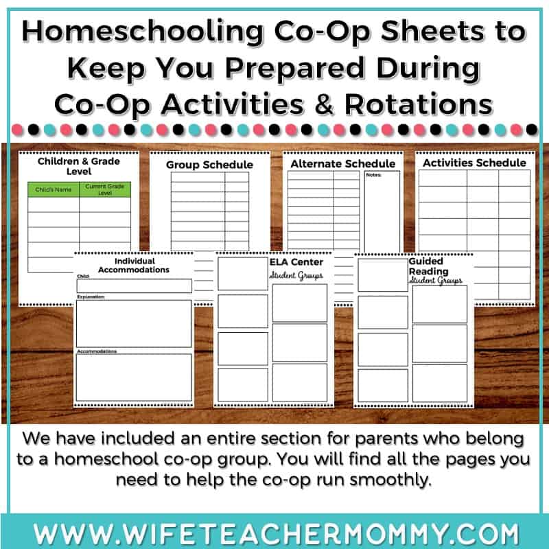 - Homeschooling co-op sheets to help you navigate a busy co-op program