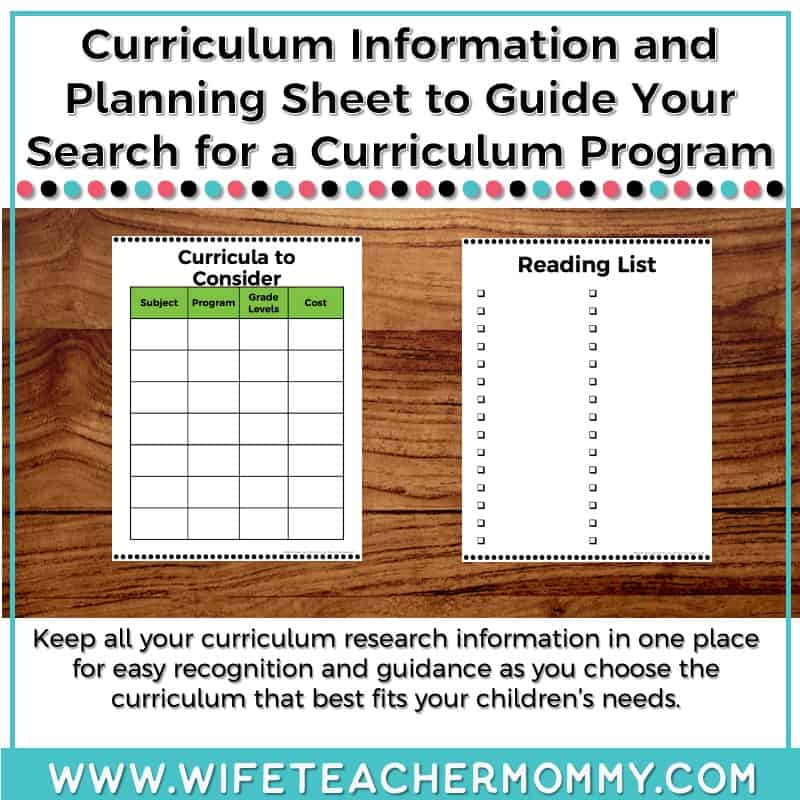 - Curriculum info sheets to help you choose the curriculum that suits your family’s needs