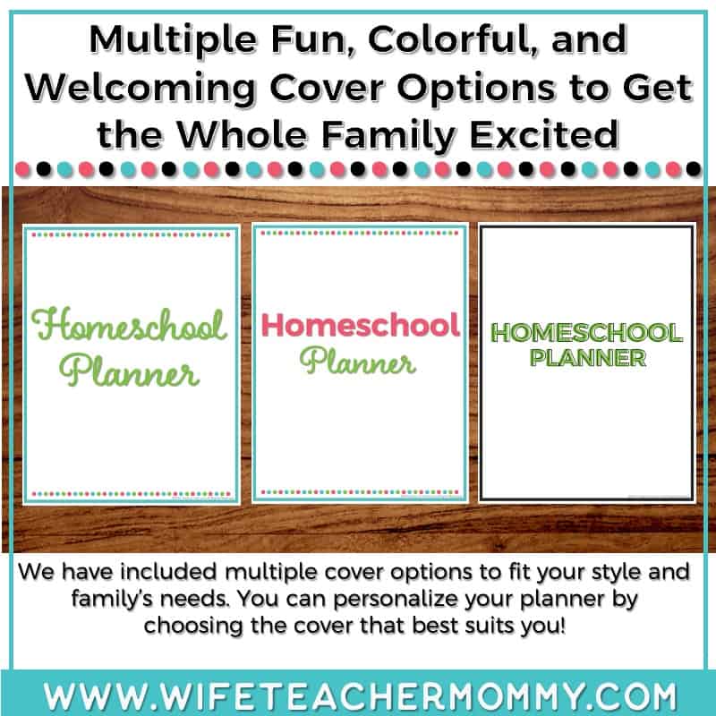 - Multiple binder cover options so that your homeschool planner reflects your family’s personality