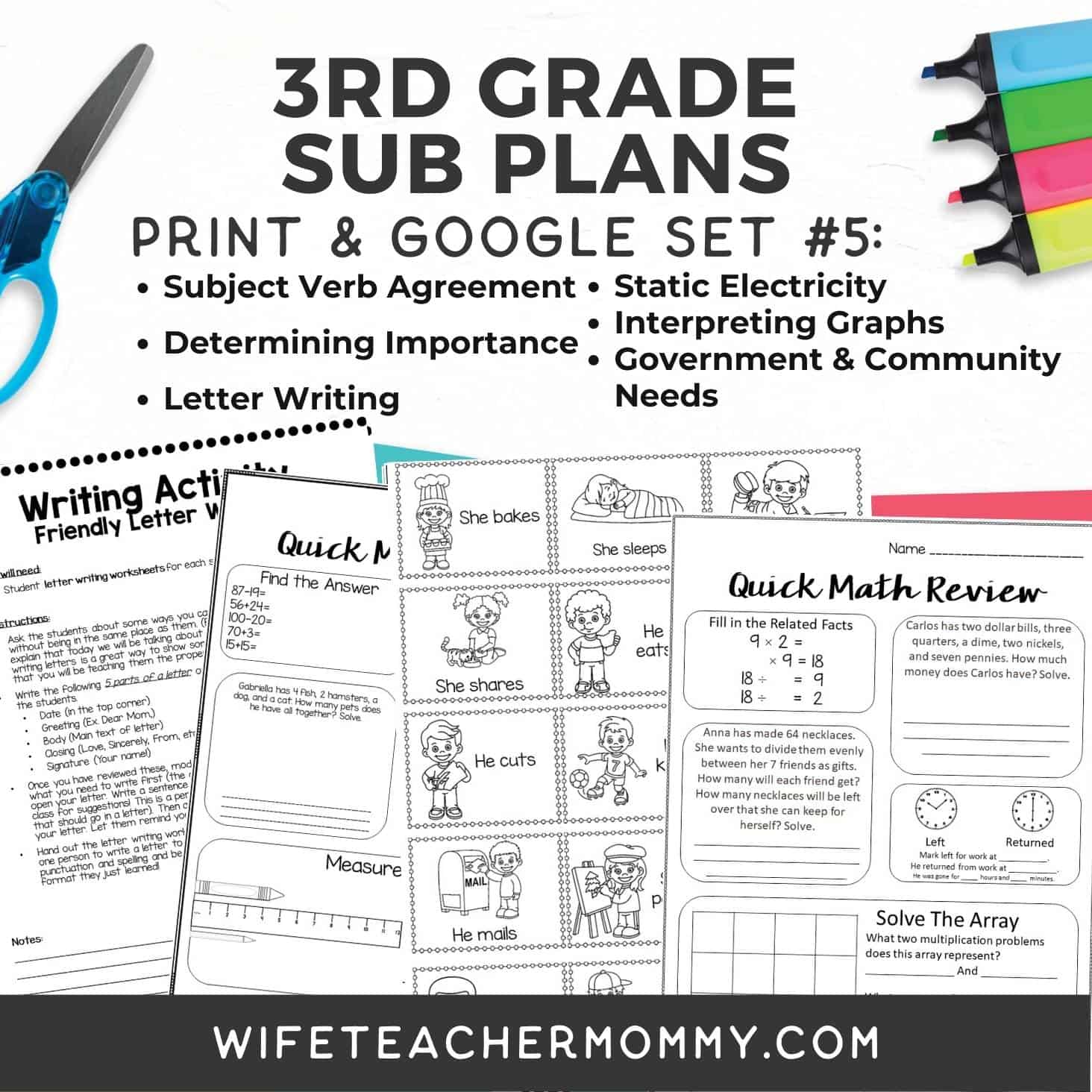 Each lesson in the 3rd grade substitute plans is simple enough for the sub to follow, but will engage your students in real learning …and not just busy work.