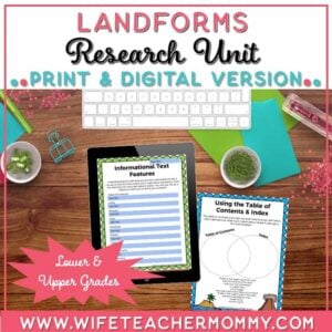 Students will study landforms in general and then be assigned a specific landform to research. The students will write a report/presentation about their landform and create a salt dough model of their landform. Finally, other classes and parents will be invited to the “Landform Fair” where your students can show off their landform models.